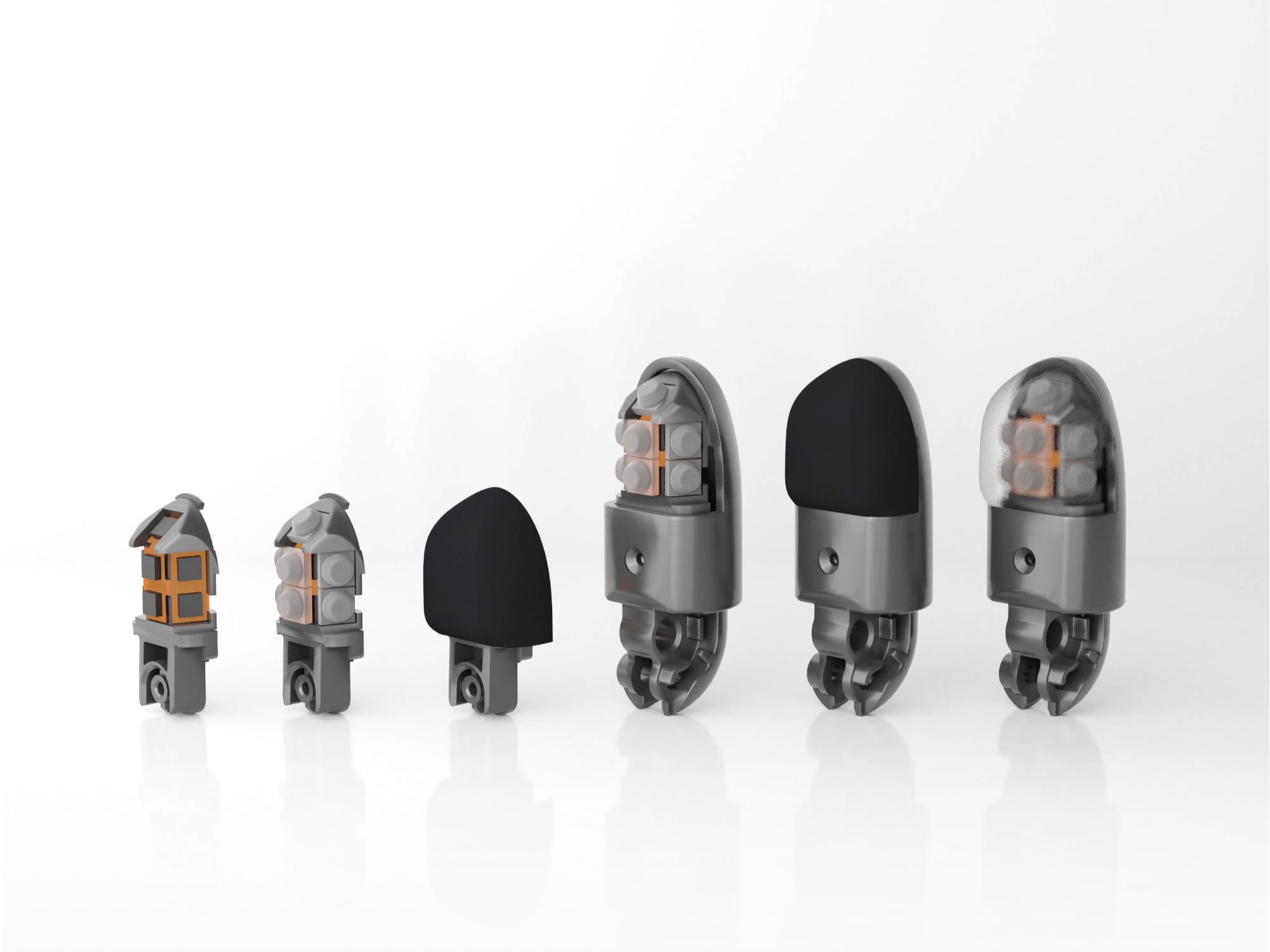 We were exclusively responsible for the design and development of the small fingertip section, which can be viewed on the left, ensuring seamless integration with the original iCub fingertip.