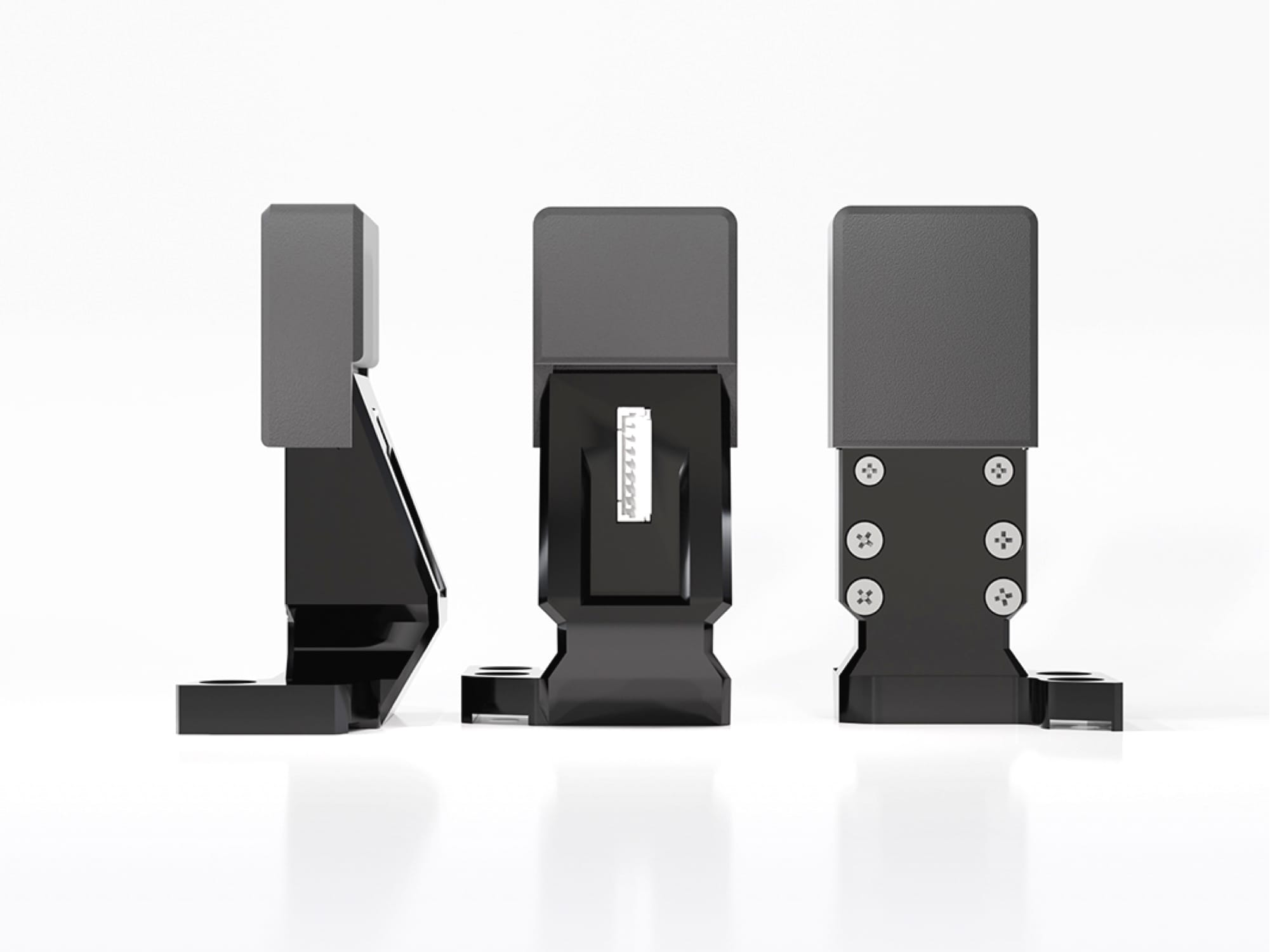 This fingertip sensor is designed with sensors on two sides, while also being sensitive on the other three sides, as the inside and outside sensors measure shear forces. Despite its advanced functionality, the sensor remains thin (10.7 mm), and its surface layer can be easily replaced. Our uSkin Protect models are specifically designed for integration onto robotic grippers. These models are regular Patch Sensors, encapsulated for protection and fit the specific gripper. Additionally, the microcontroller is provided.